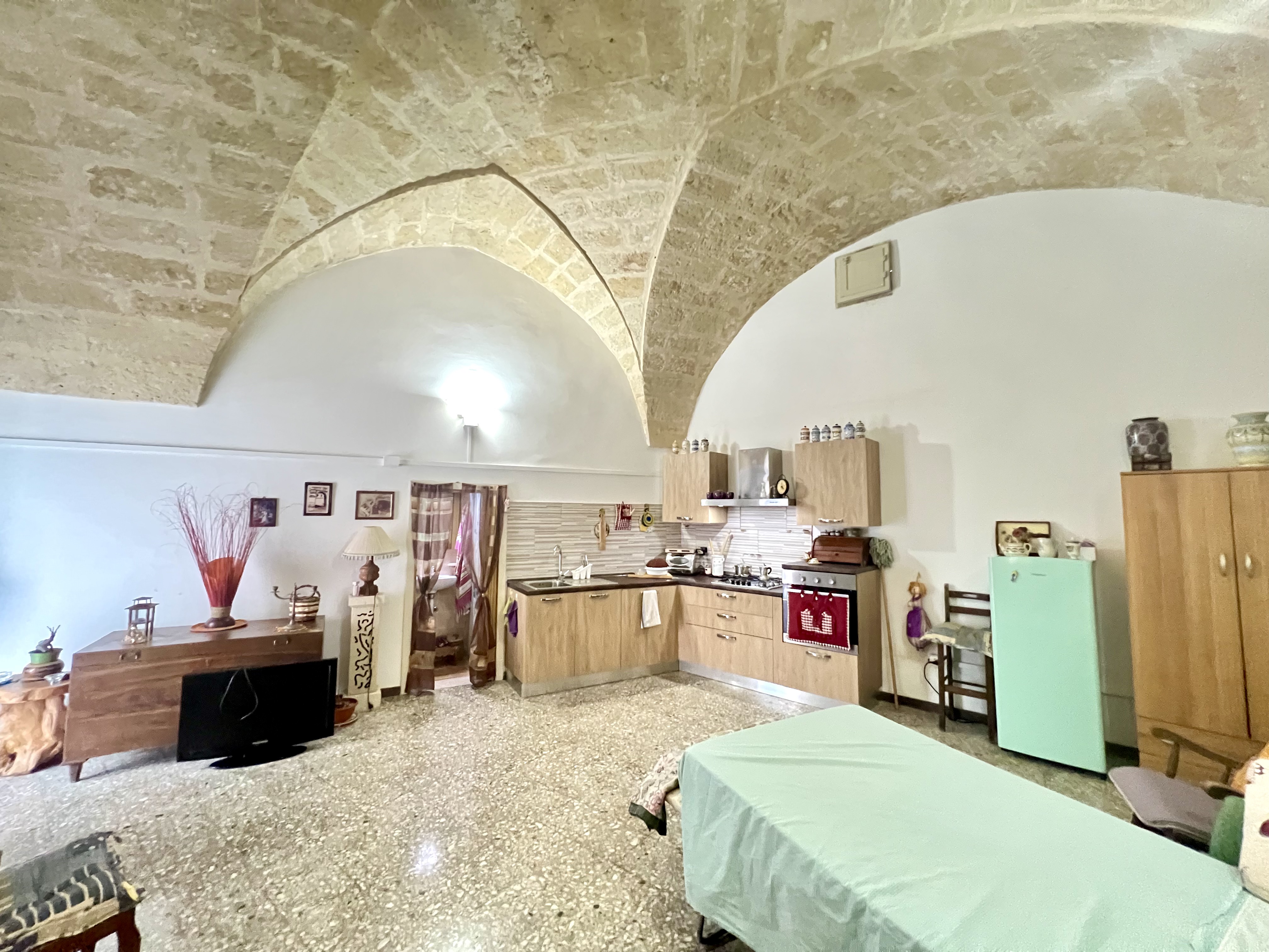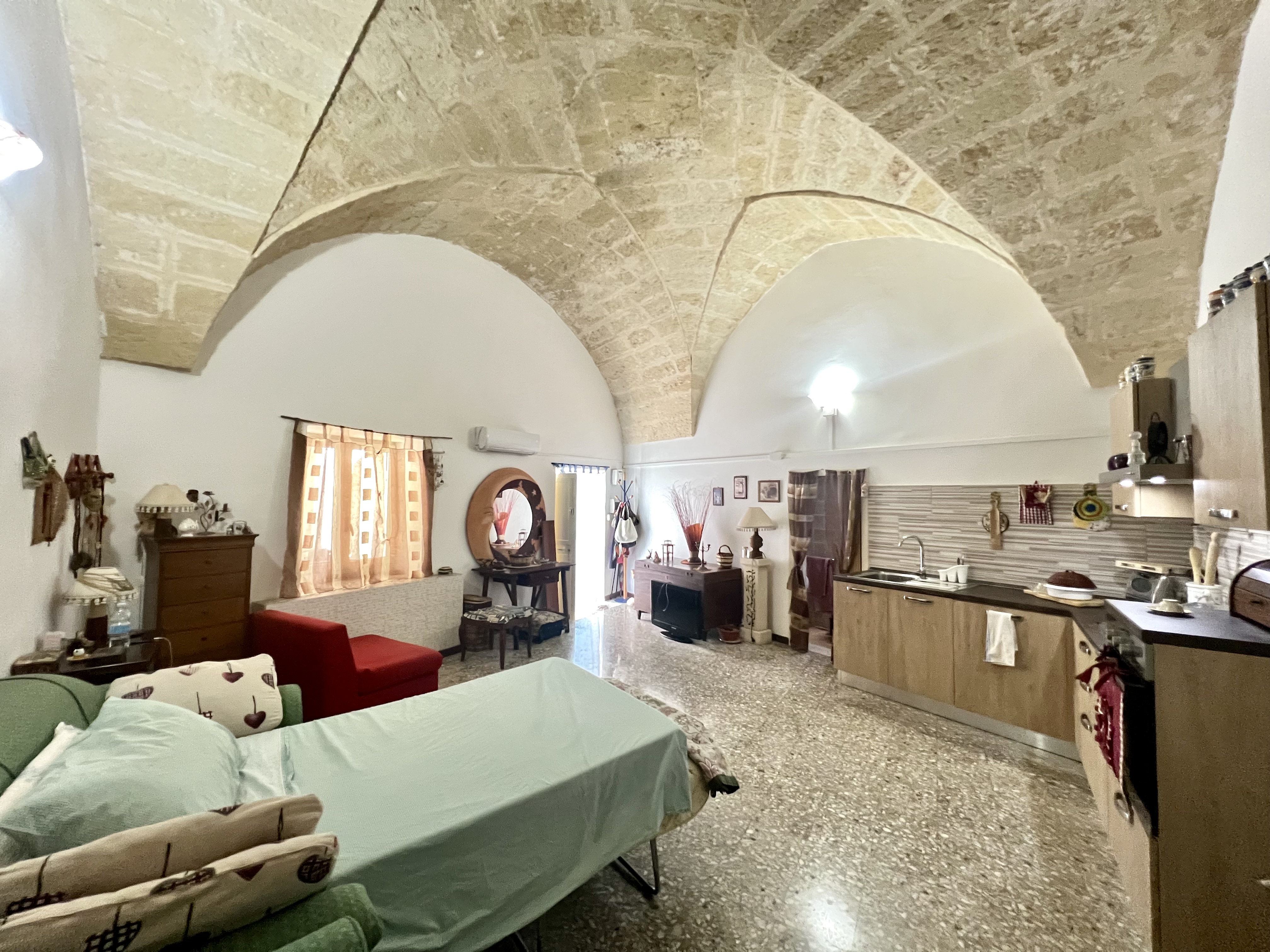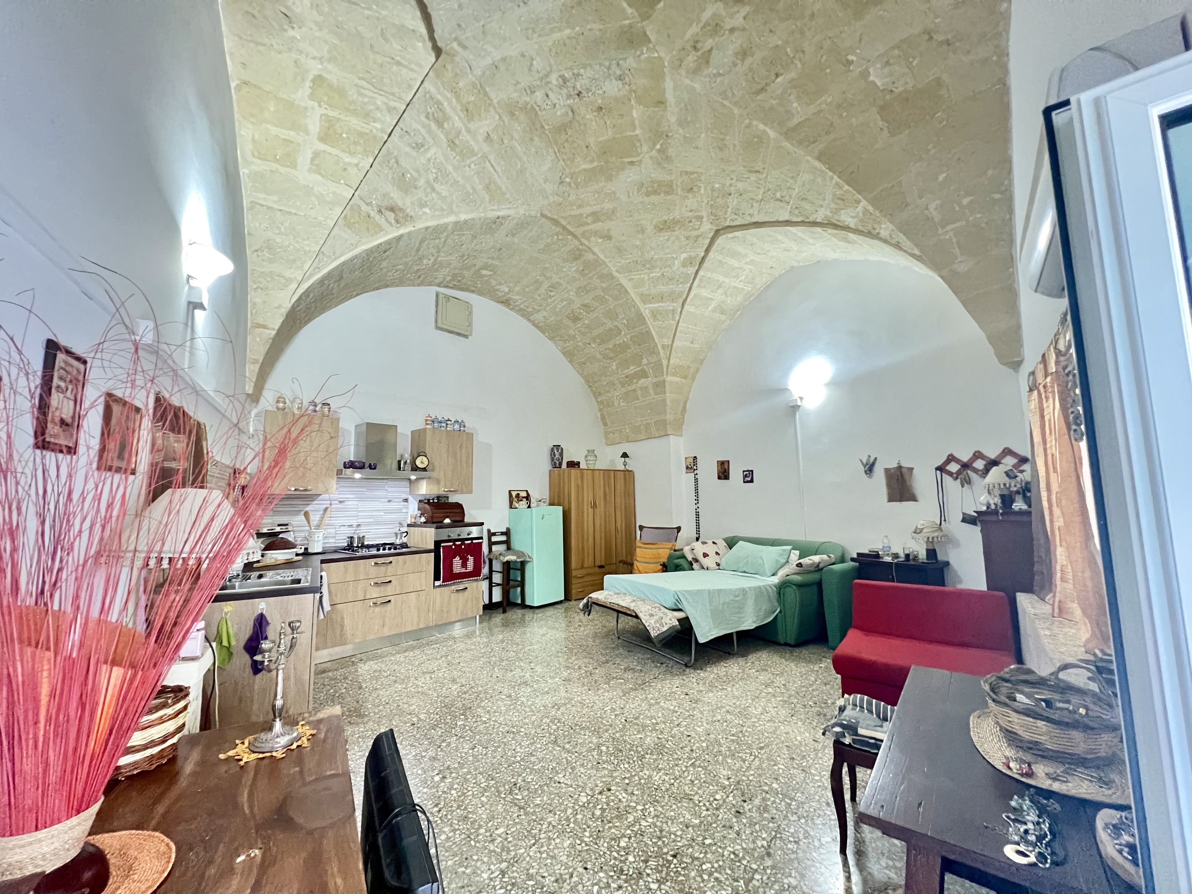 L’immobile offre un totale di mq 35 composto da ingresso con angolo cottura un letto matrimoniale con le caratteristiche volte a stella in pietra leccese ed un bagno al sotto scala.