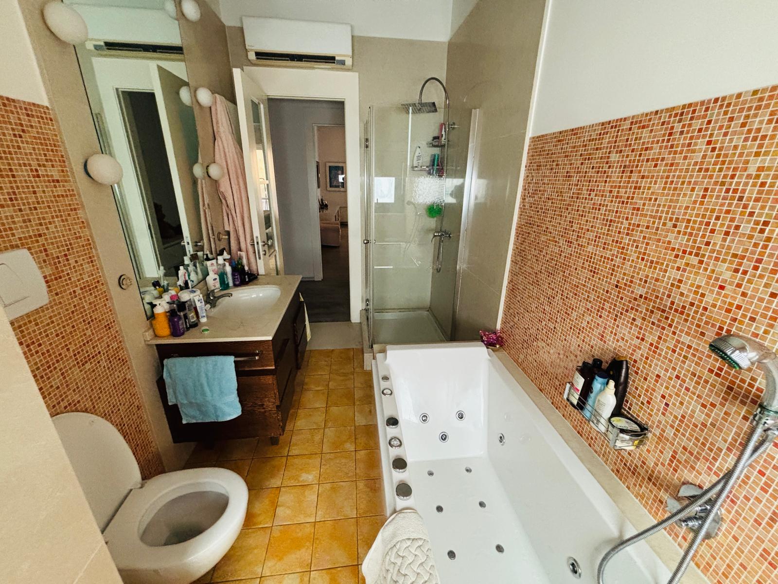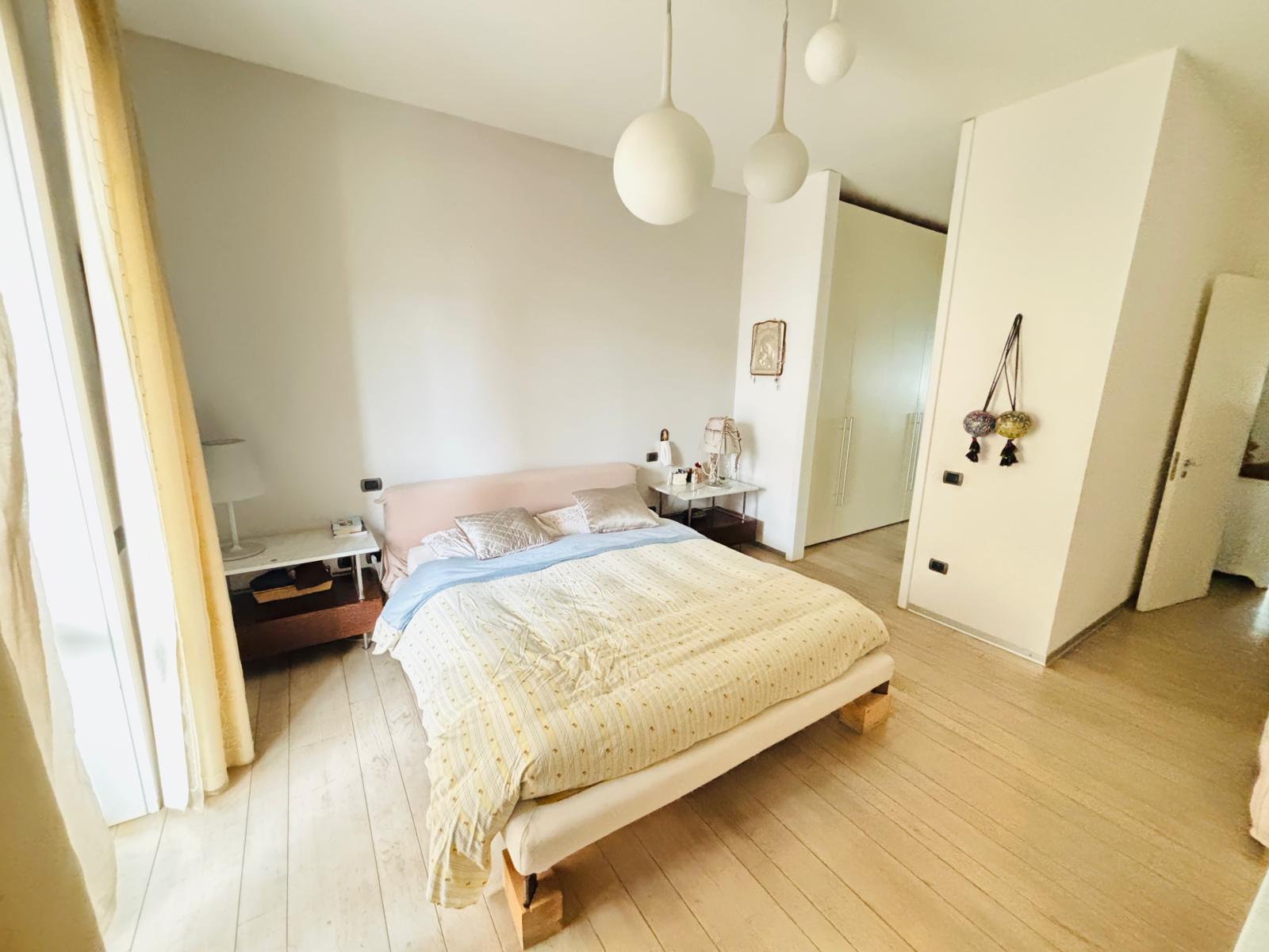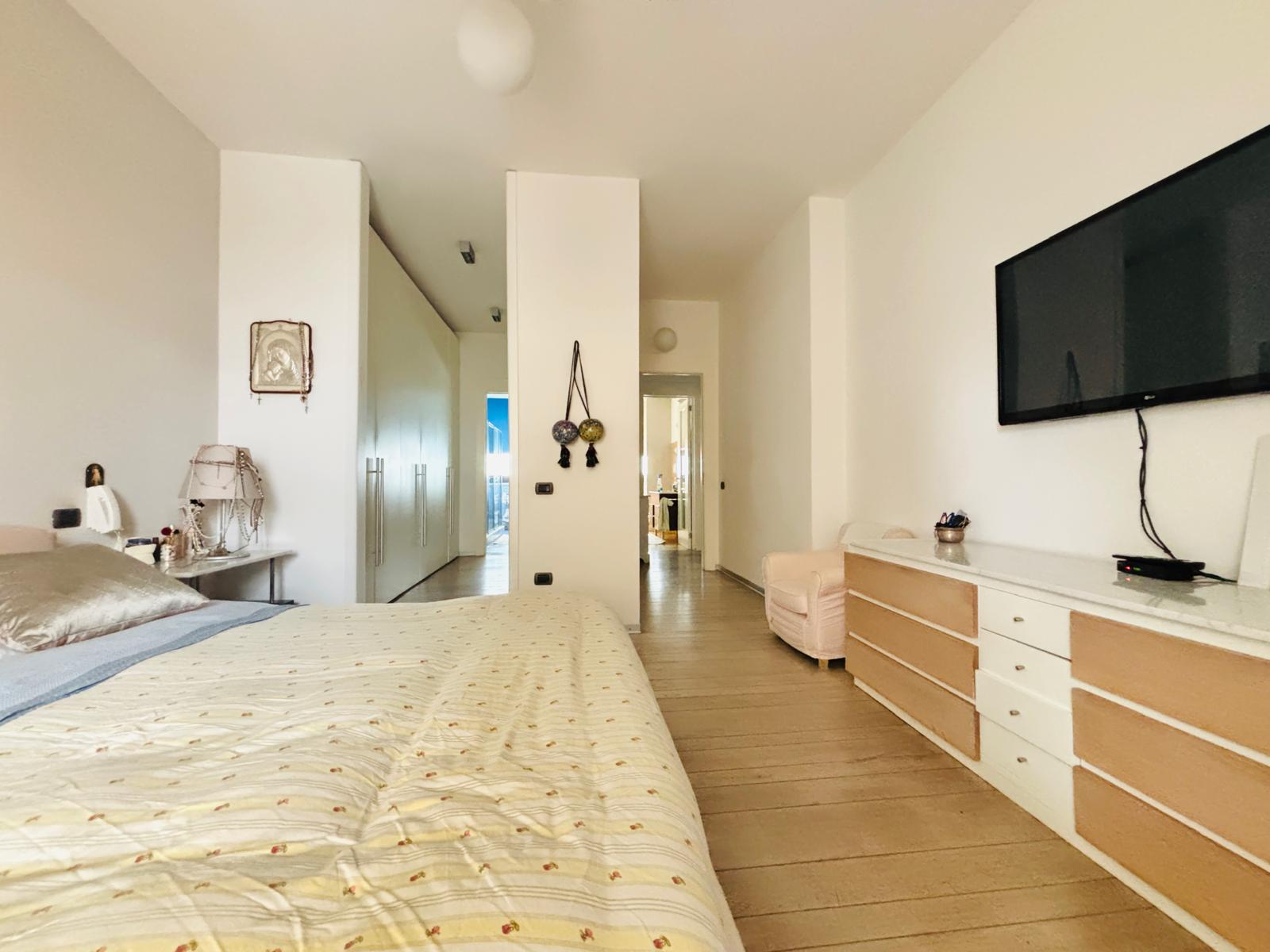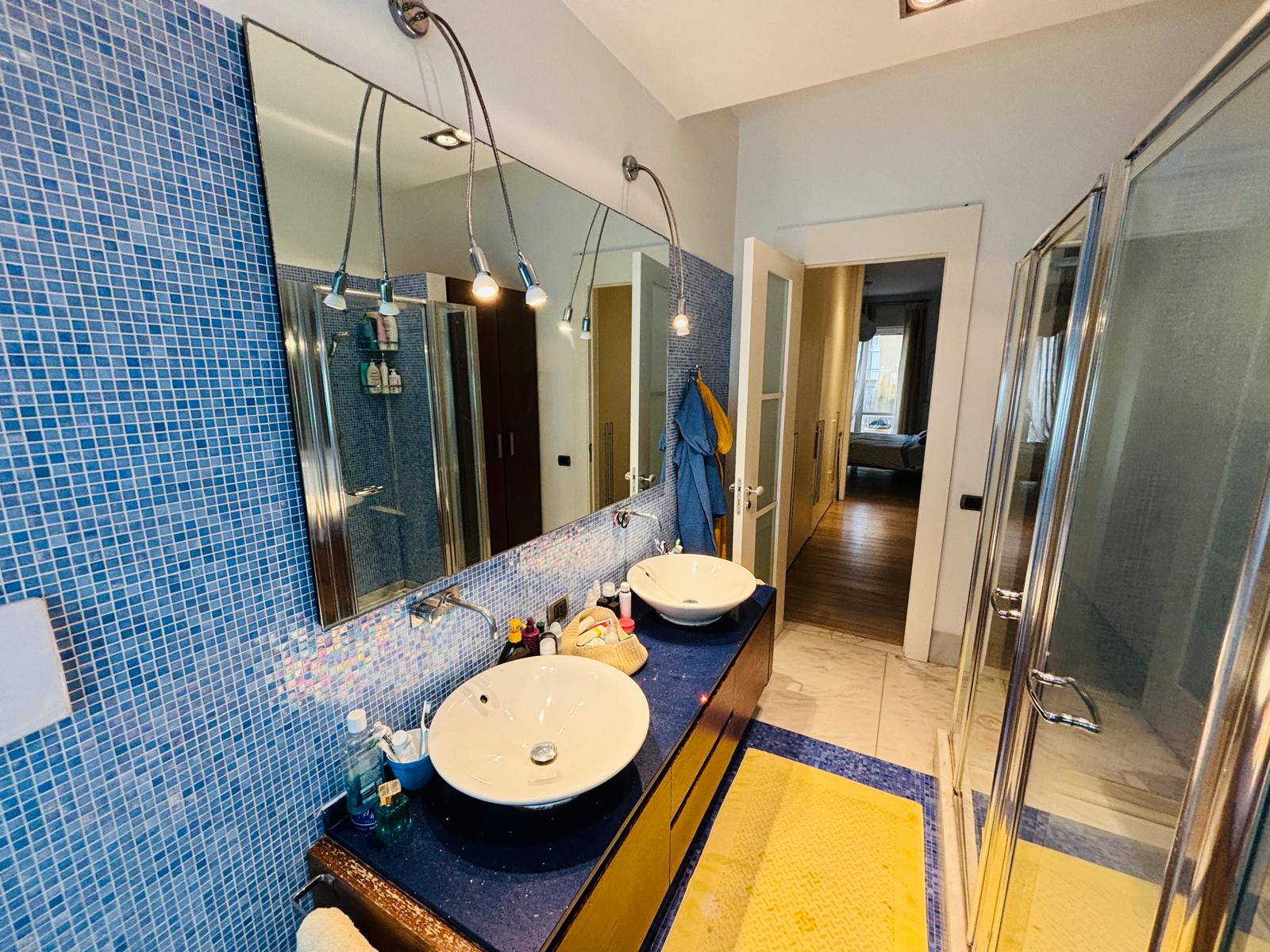 La zona notte è servita da un comodo disimpegno che conduce a tre camere da letto e a un bagno a servizio delle stesse, completo di vasca e doccia. È presente inoltre un ripostiglio. La camera padronale dispone di un’ampia cabina armadio e di un bagno privato con doppio lavabo e doppia doccia.