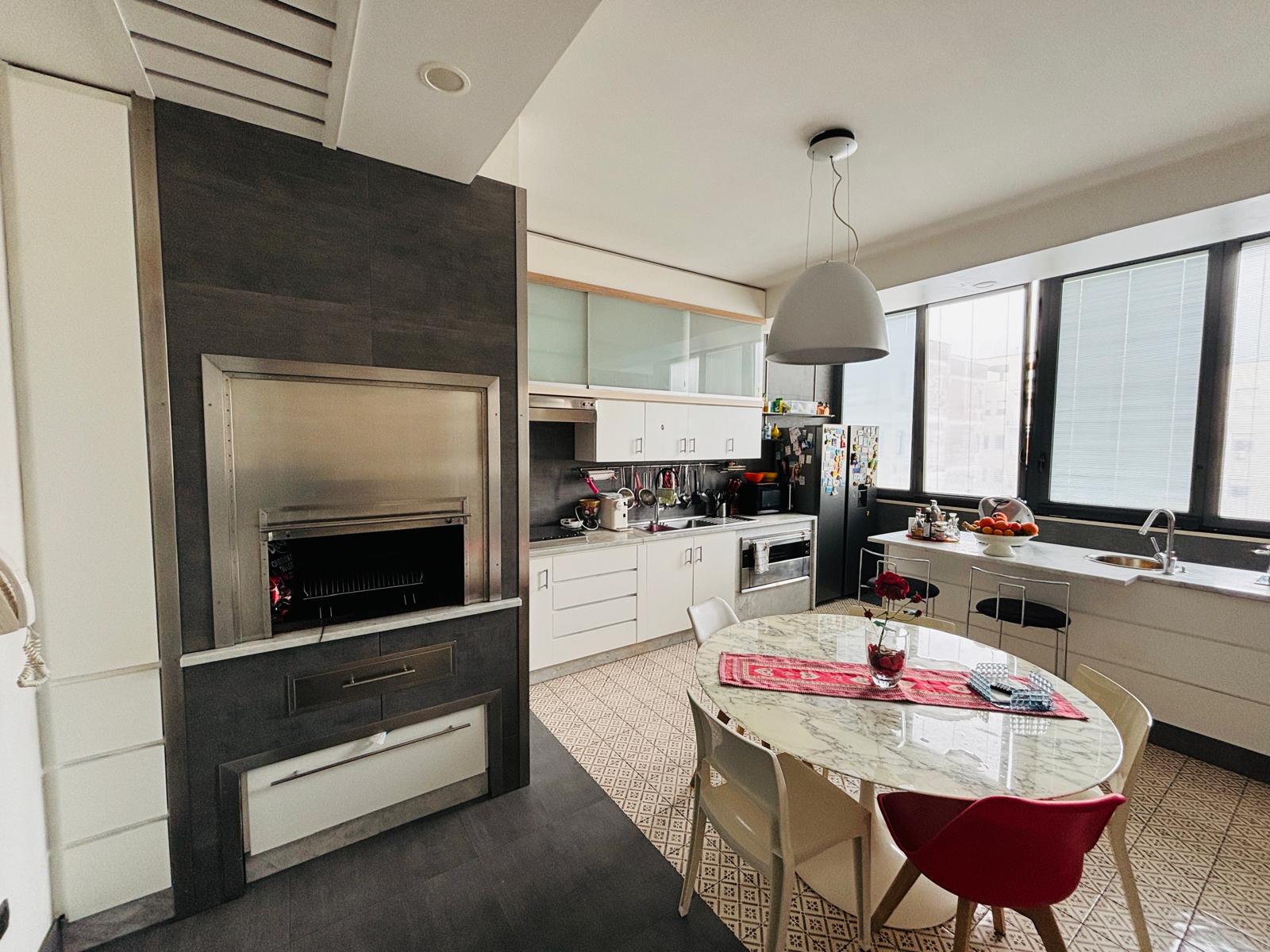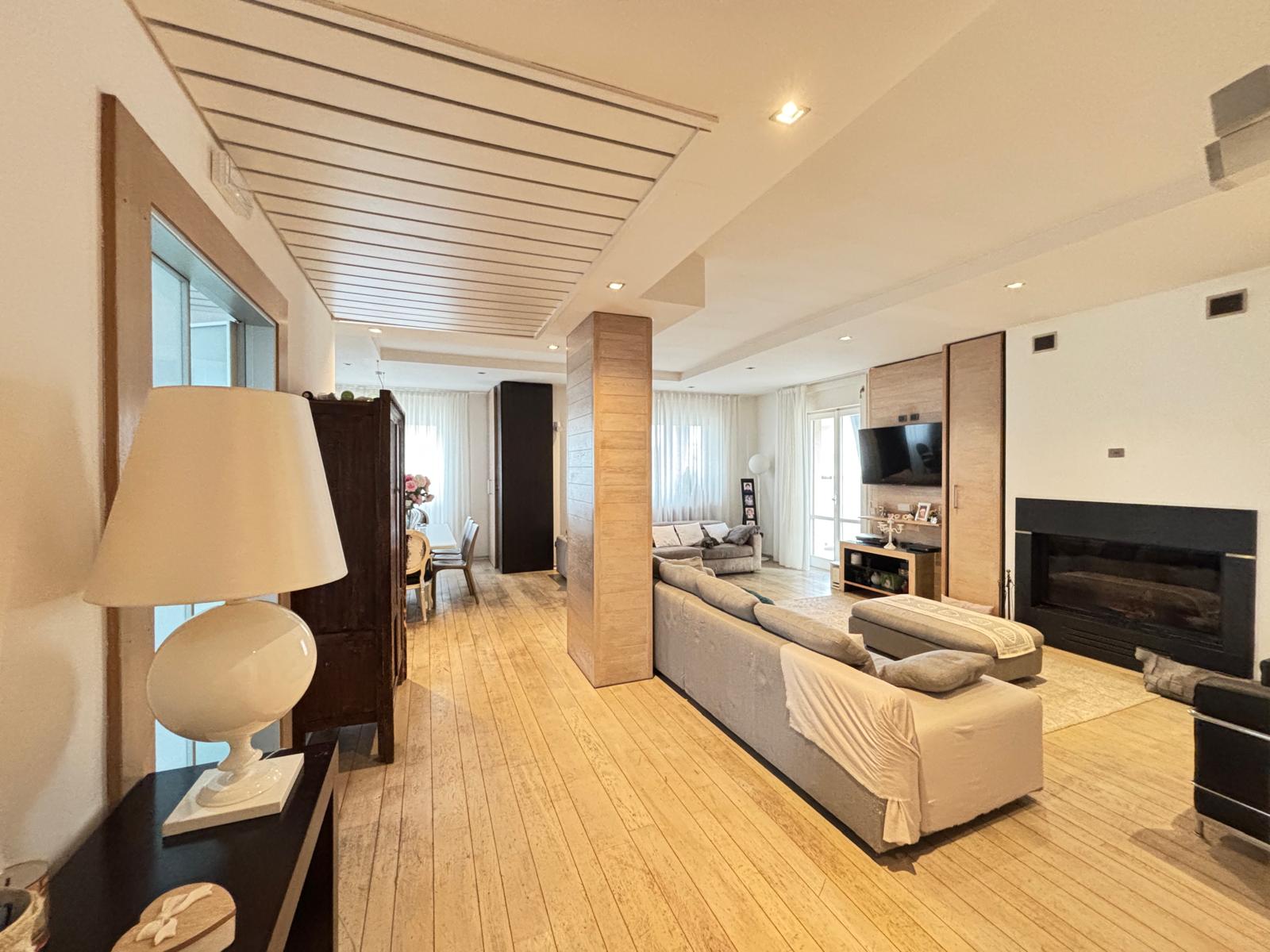 L’immobile sviluppa una superficie coperta di circa 240 mq ed è dotato di doppio ingresso. Si compone di un ampio salone con camino, con affaccio su un balcone di circa 50 mq, ideale da vivere nei periodi estivi. La cucina è abitabile, luminosa, con camino e annessa lavanderia. Completano la zona giorno uno studio e un bagno.