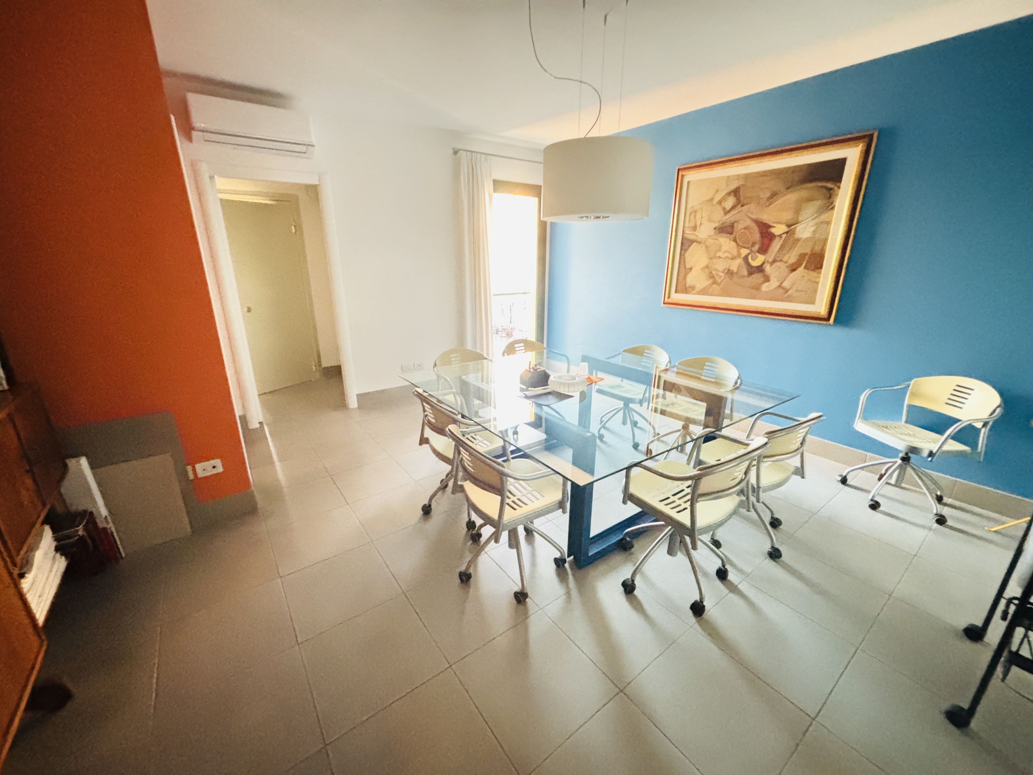 L’immobile, posto al terzo piano e servito da ascensore, sviluppa una superficie commerciale di circa 195 mq. attualmente composto da un ingresso/sala d’attesa, ampia sala riunioni, quattro vani oltre ad tre bagni finestrati.